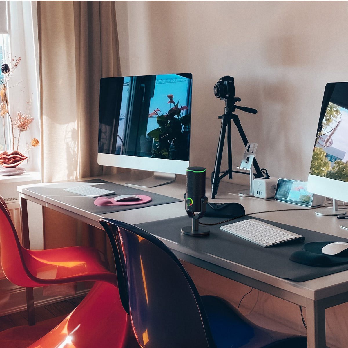Use the included stand to hold the mic, or if you’ve already got a boom arm or C-clamp system in your setup, it will screw right into either.