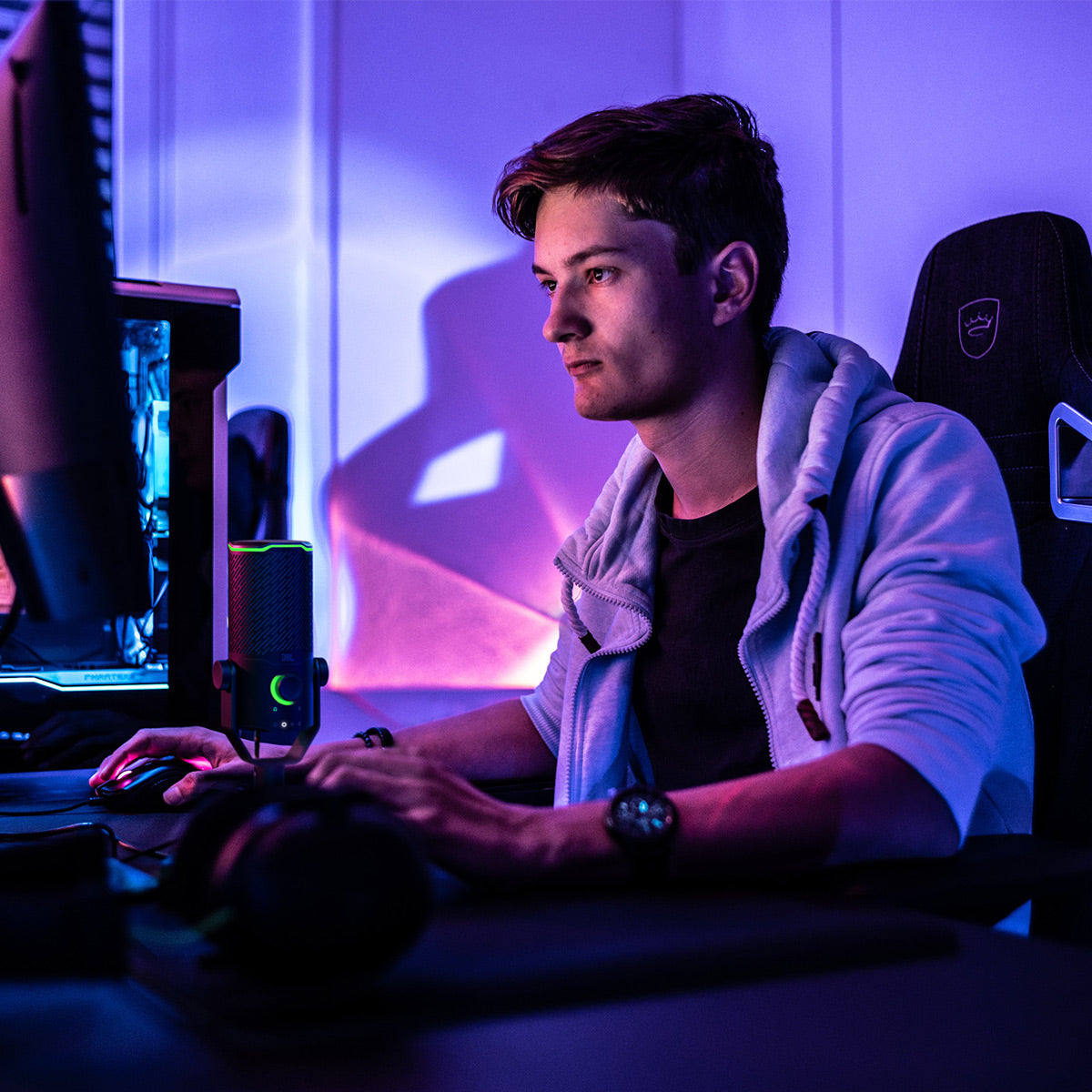Feel a cough coming on? Just tap the touch sensor on top of the mic to mute yourself briefly. The RGB lights around the grille will turn red to remind you that your audience can’t hear you.