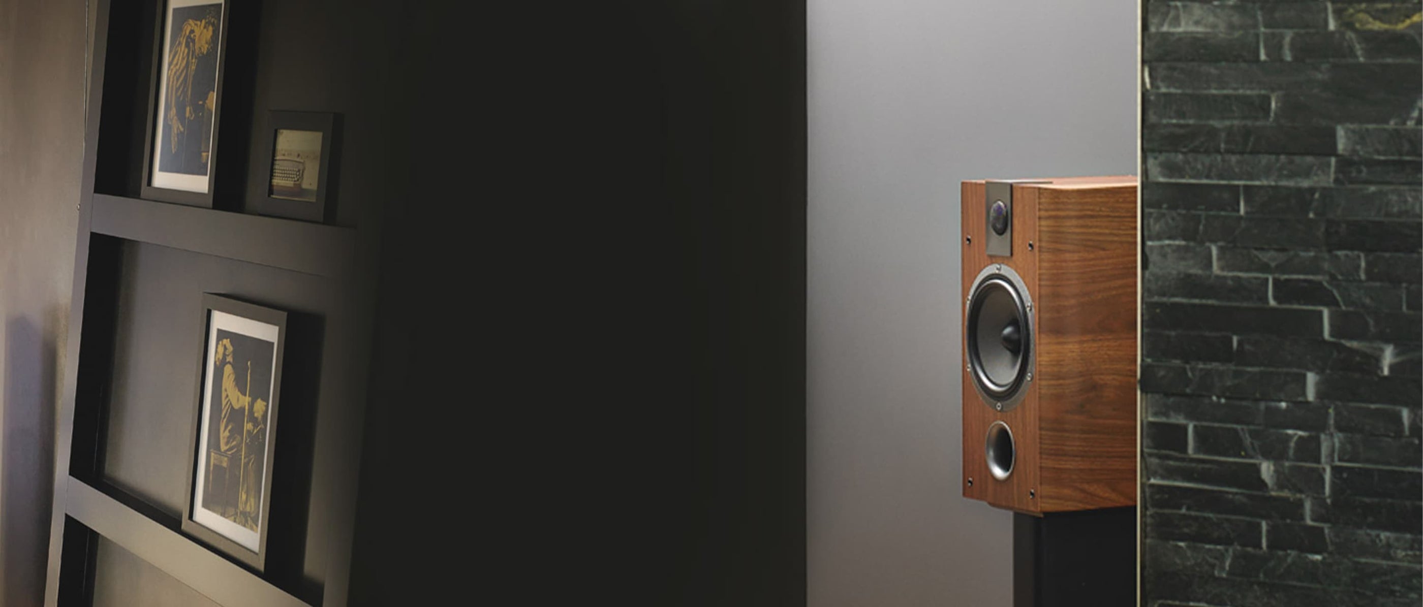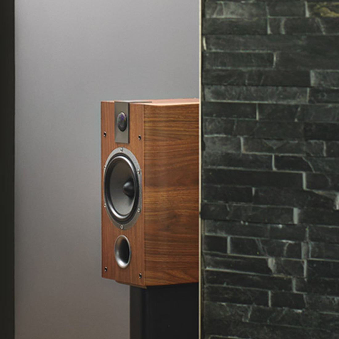 These speakers are available in a few different finishes. You have white, you have black, and then you have like a walnut wood tone that's available.