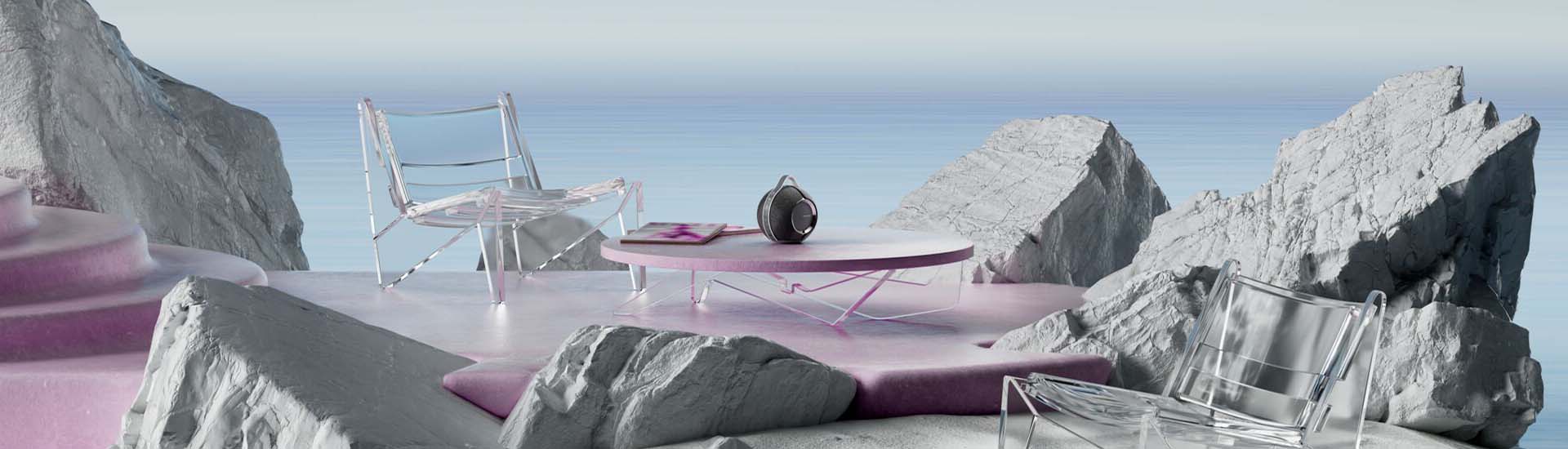 On top of the sphere, we have 4 full-range drivers in a sort of checkerboard pattern. Each side has a left and right channel. So no matter where you sit in relation to the Mania, you will always have a stereo image in an open space. This is actually the same concept we use when designing distributed audio systems in large open spaces. Alternating left and right channels in a checkered pattern means that more people are able to get a stereo image when listening. But here’s the trick to the Mania. If it’s placed near a wall or hard surface, it will automatically change the output of the two drivers closest to the wall. Located near the bottom of the speaker are 4 microphones, both used for Alexa voice control and ASC (Active Stereo Calibration). Mania will listen to its surroundings as it plays and will automatically switch the two drivers facing the wall to match the orientation of the drivers facing the open space. By doing this, the speakers facing the wall will reflect off of the wall and increase the width of the sound stage, effectively making the Mania sound like an even bigger speaker than before.