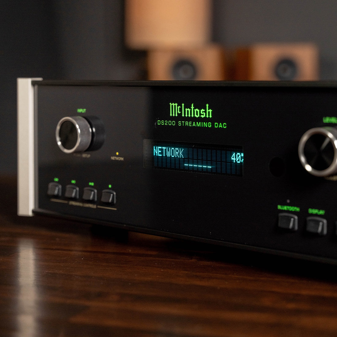 The first thing you notice about the DS200? This streamer is built to last. The classic black glass front panel with the illuminated McIntosh logo, the polished metal chassis, the smooth movement of the knobs—it all feels premium. It's not just a piece of audio gear. It's a work of art that makes a statement.