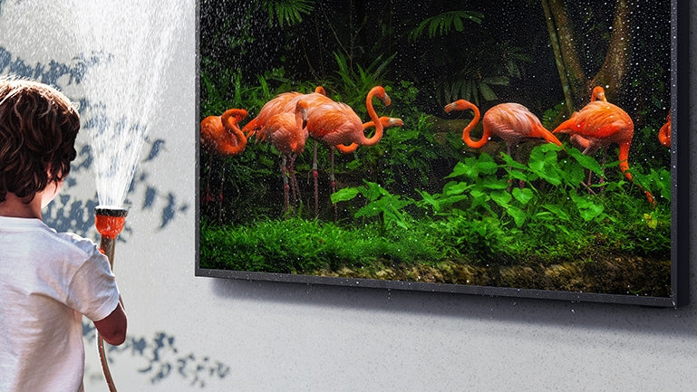 Hey, everybody, it's Adam with World Wide Stereo here on location with the first outdoor TV made by arguably one of the best TV manufacturers on the planet. This is the Samsung Terrace. The Samsung Terrace is available on a 55, 65, and 75-inch size. And it does have speakers but there is also an optional soundbar for it. And there's also many ways to connect it to potentially an existing outdoor landscape audio system to even give a bigger impact.