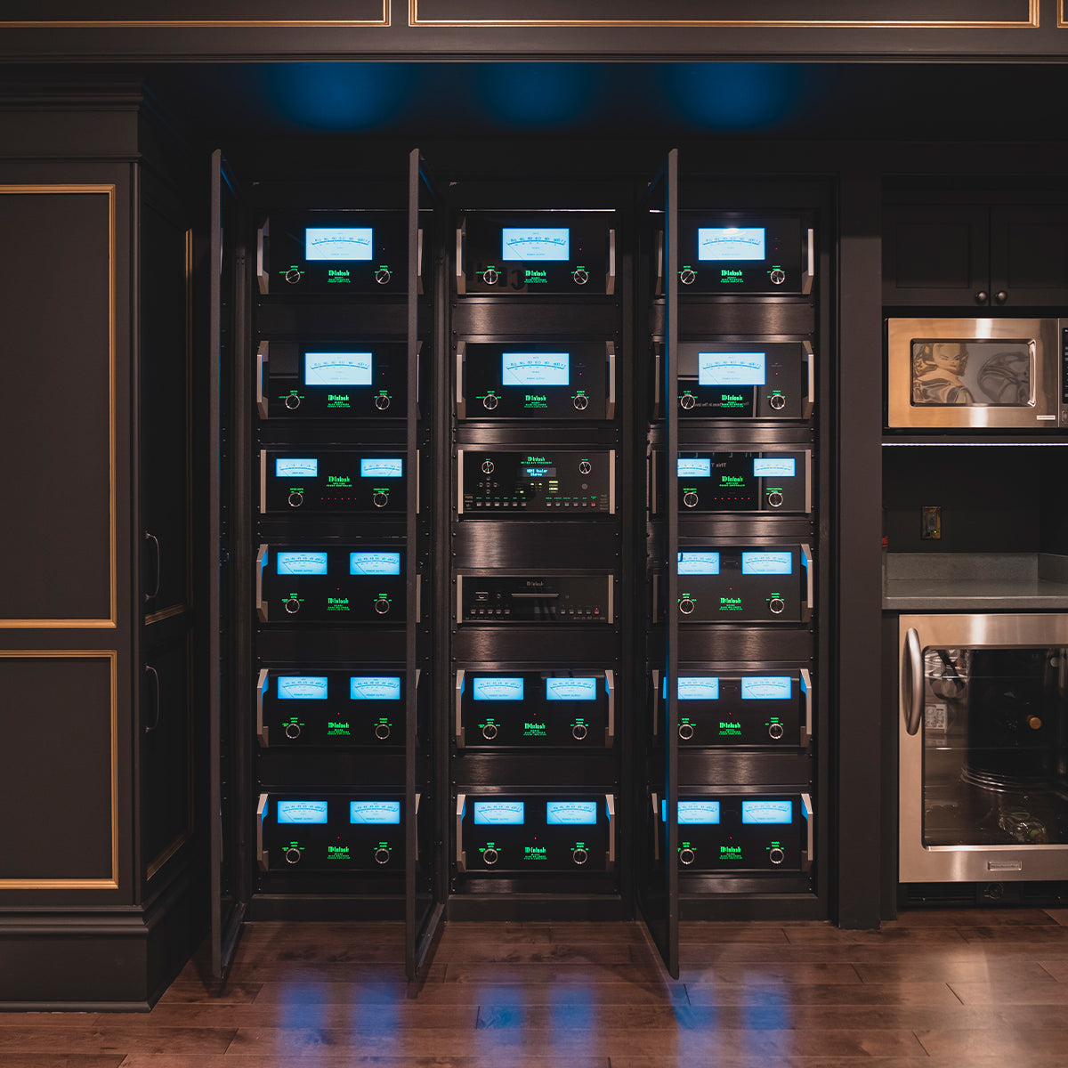 - 1 x McIntosh MX150 7.1 A/V Surround Sound Processor for source selection and routing audio to a Trinnov Audio sound processor.