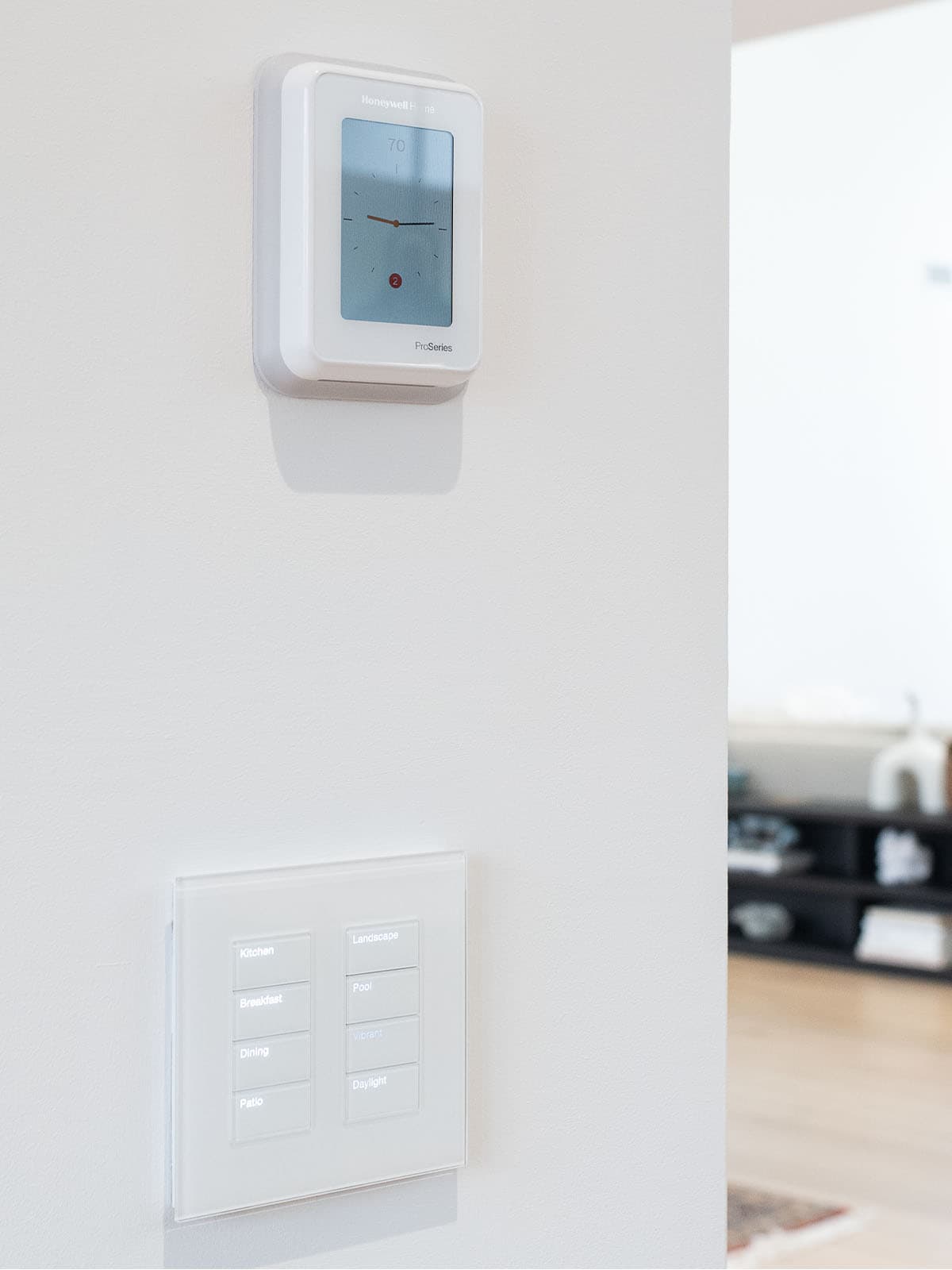 Custom designed and easy-to-control interior and exterior lighting lets you curate and control your home's atmosphere at the touch of a button (or voice command) whether you're in your living room, sitting by the pool, or on the other side of the world. Set your lights to turn on or off at a specific time of day or at the press of a button. Come home to a well-lit house or look like you’re home even when you’re not. It's that simple.