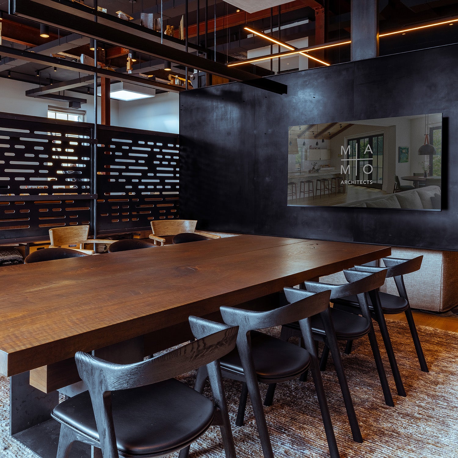 The building features a wide-open floor plan, exposed ceilings, and carefully considered materiality. Our role was to integrate the technology—networking, audio, conferencing, and surveillance—so it was as thoughtful as the architecture itself: highly functional for staff, seamless for clients, and fully aligned with MaMo’s aesthetic. In a studio where every material and sightline matters, the objective was clear: systems that perform flawlessly while remaining visually unobtrusive.
