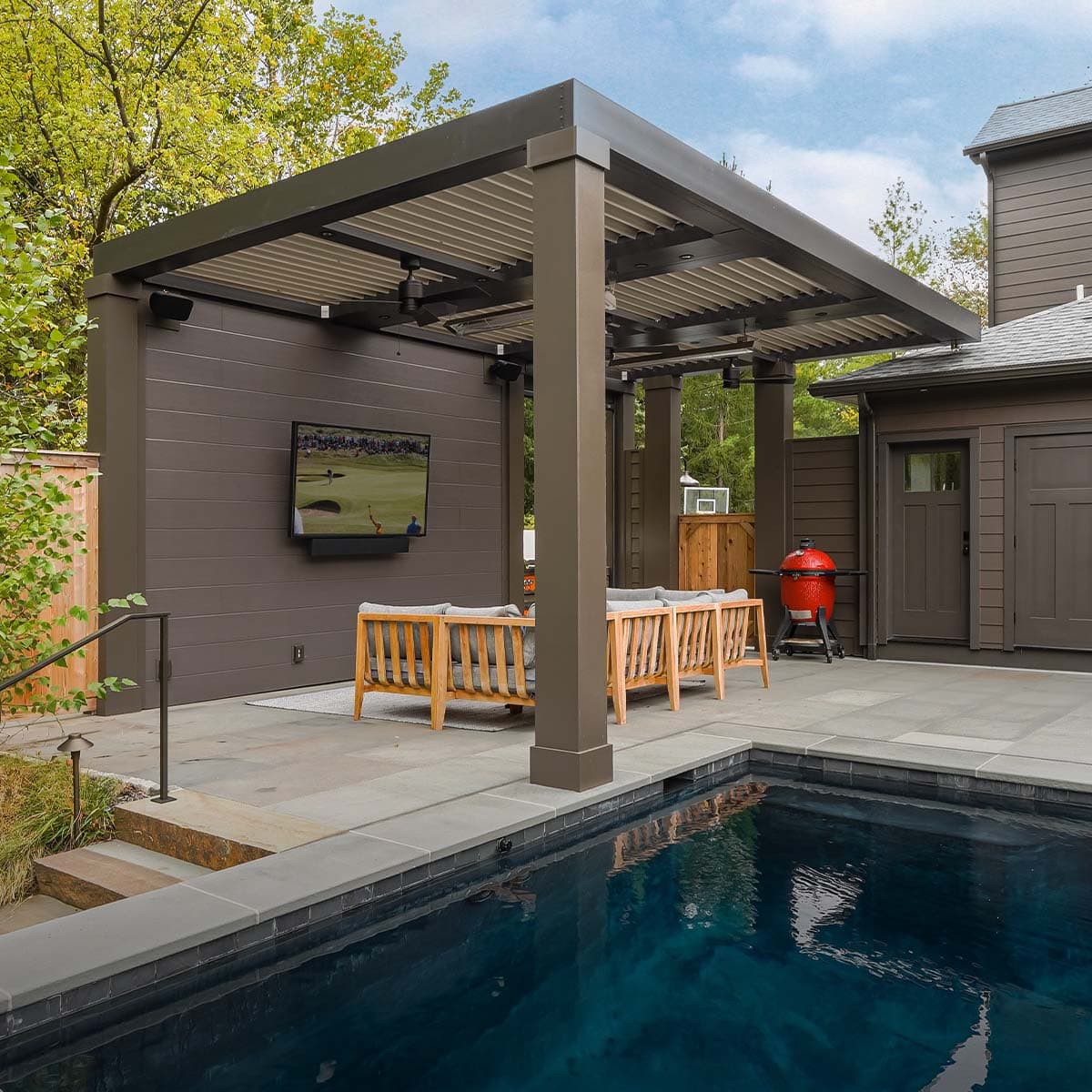 The Home Network and Outdoor Wi-Fi: The backbone for a killer full-property system is an enterprise-grade home network. Outdoor access points provide a robust home network that gives our clients full control over their outdoor system from anywhere on their property... or anywhere in the world from an app on their phones. Not only can they stream music, watch movies, or control the volume and the zone of their system, they can also control the louvers on their pergola roof, their outdoor heater, and their pool system.