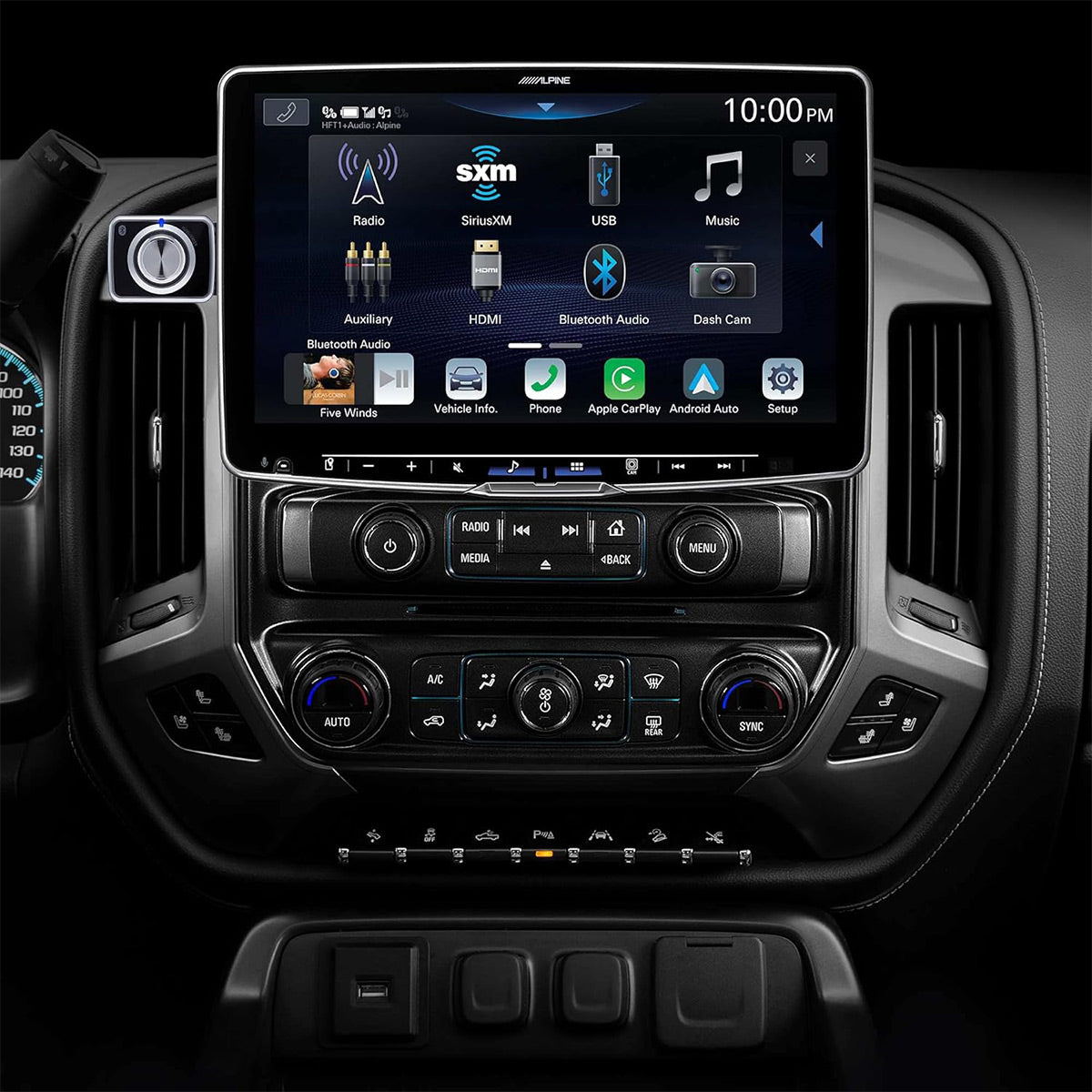 The RUX-H02 includes a mount that attaches directly to the Alpine Halo9 and Alpine Halo11 displays for quick subwoofer and main volume control. The RUX-H02 can also be mounted to a dash and work with the iLX-507, i509-WRA-JK and i509-WRA-JL. The RUX-H02 follows the same design identity as the Alpine Halo display line, with tapered edges and a clean, silver finish to create a matching system aesthetic.