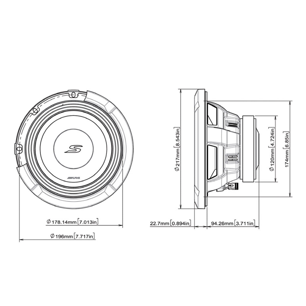 The Next-Generation S-Series Subwoofers contain Alpine's High Amplitude Multi-Roll (H.A.M.R.) Surround Technology. This rubber surround allows the subwoofer cone to efficiently move air while staying cool. This technology allows for 13mm of one-way excursion that creates incredible accuracy from the subwoofer.