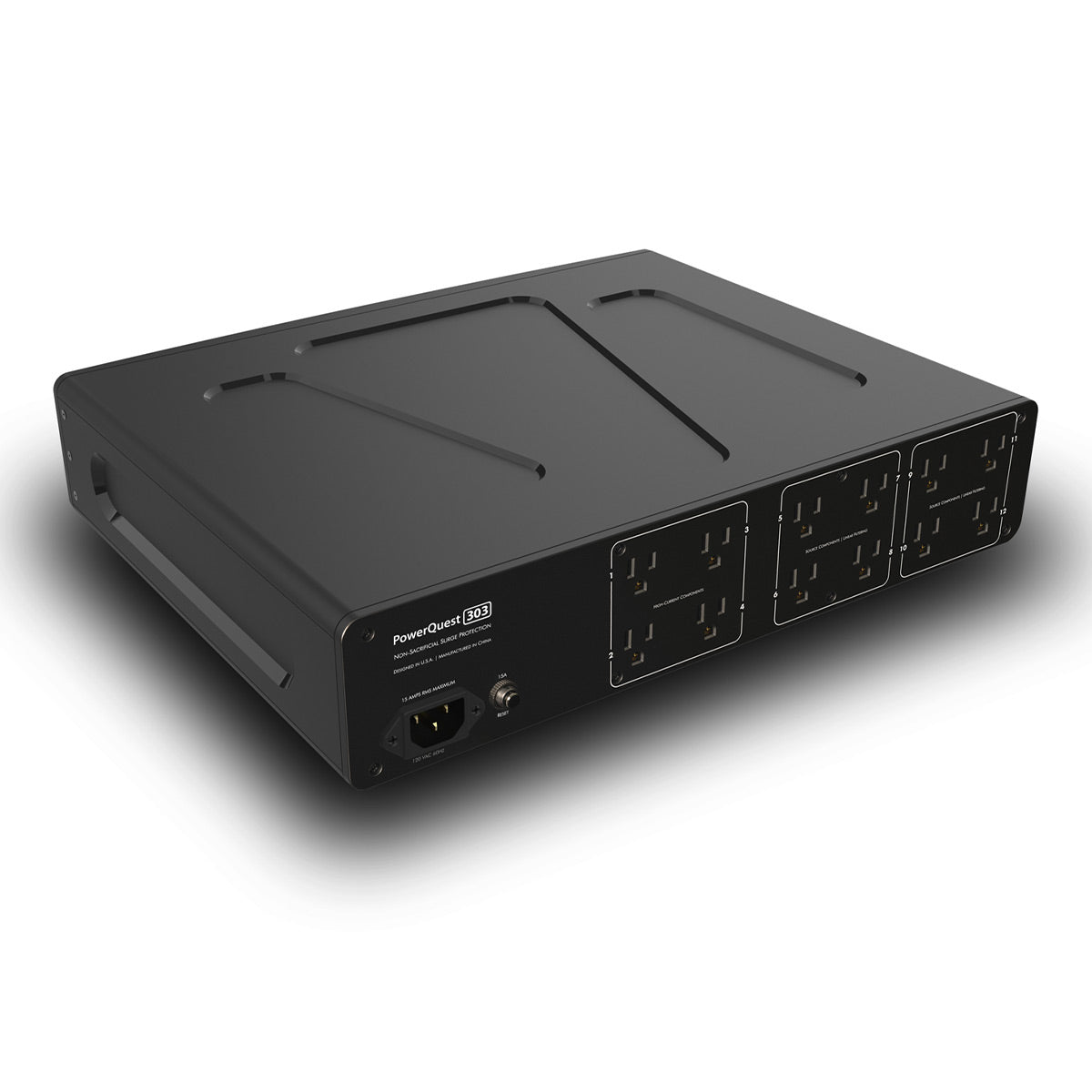 The AudioQuest PowerQuest 303 is a high-performance power conditioner with 12 AC outlets (4 High-Current outlets for amplifiers and 8 Linear-Filtered outlets for source components), a 2m detachable AC power cable, and 2RU rack ears for simple rack-mounting. PowerQuest ensures clean power, optimizes audio/video performance, and provides steadfast protection. Simply set it and forget it.