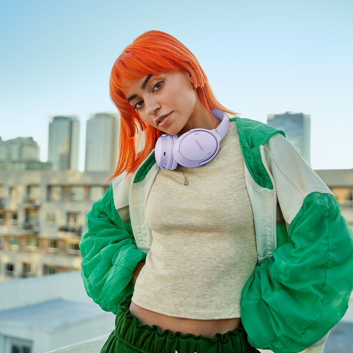 Chin up, shoulders back, music blasting. Press play and take charge of your music with Bose QuietComfort noise-cancelling headphones. With customizable high-fidelity audio and the ability to shut out outside noise as you please, these over-ear headphones come in an iconic design with colors that are as bold as you. So strut and stride along to the beat with sound that puts you on top of the world.