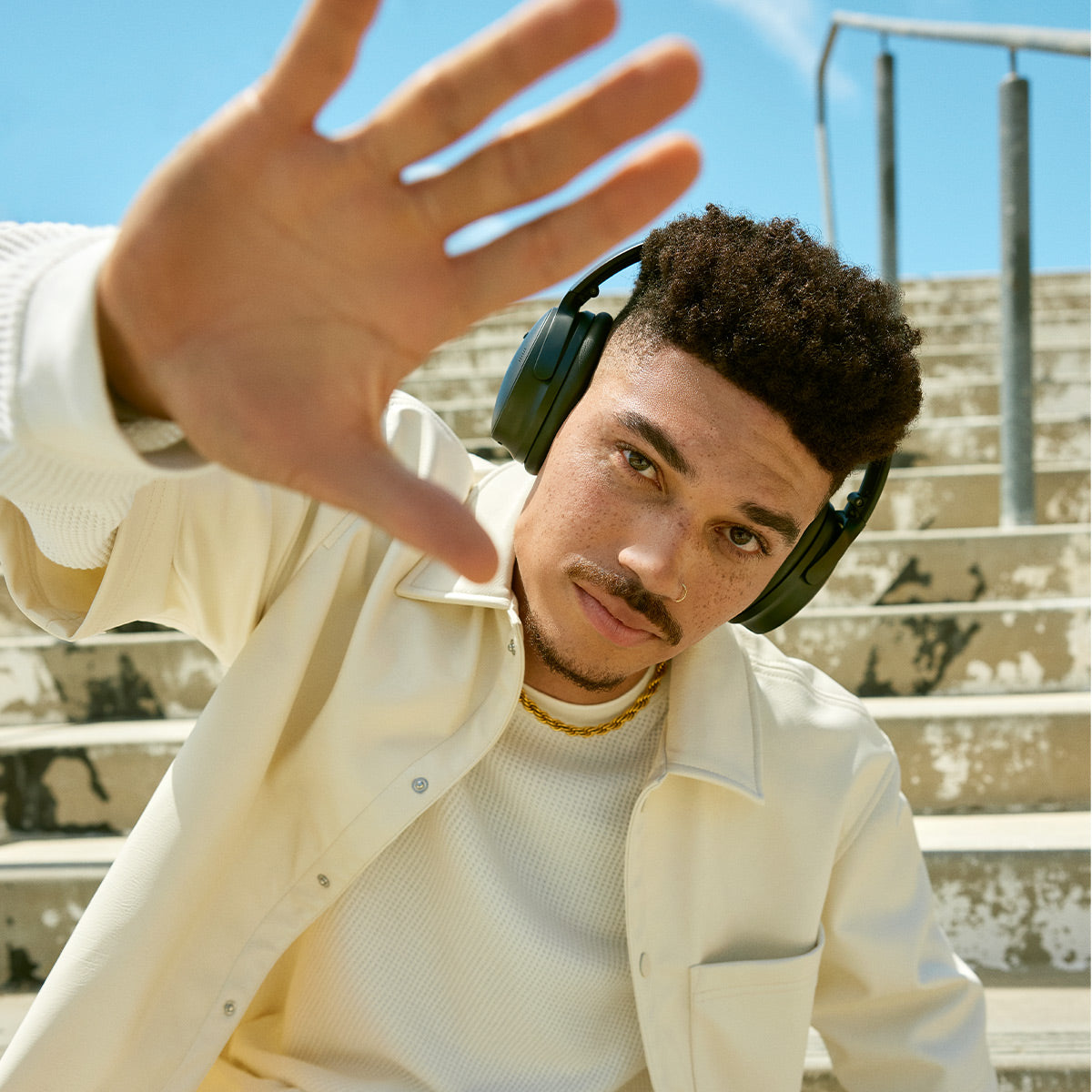 You decide how much of the outside world you let in. These over-ear headphones come equipped with Quiet and Aware Modes that let you toggle between full noise cancelling or full awareness of your surroundings. Or better yet, create your own custom mode and have the power to adjust the noise cancellation as you see fit, add Wind Block to tune out breezy environments, and revisit the custom setting at any time.