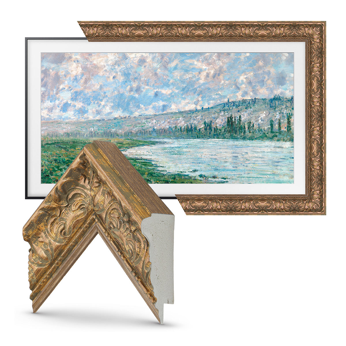 This premium decorative TV frame is made to perfectly fit any size 2021, 2022, 2023, 2024, or 2025 Samsung Frame and Frame Pro TV. The frame ships directly to you in four easy to assemble pieces and can be snapped together and fully attached to your Samsung TV in under 2 minutes. Each frame hooks onto the top of your Samsung Frame television and clips into place at the bottom to perfectly align with the edge of the TV screen. All frames can be easily installed by any consumer with no technical knowledge. Enjoy a finished look to your television to match your room's decor.