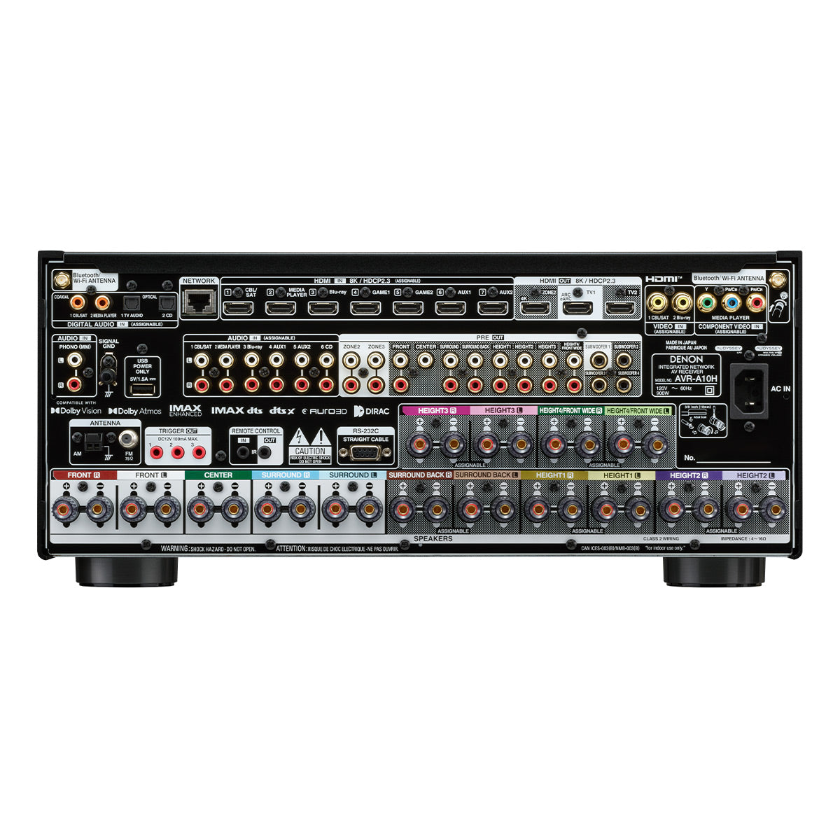 Power your dream sound system with the Denon AVR-A10H. Featuring a robust 13.4-channel amplifier, it drives up to 13 speakers and 4 subwoofers, delivering 150 watts per channel. Enjoy immersive formats like Dolby Atmos, DTS:X, IMAX Enhanced, and AURO-3D; stunning 8K visuals; and audiophile-quality sound. Crafted in Japan for unparalleled excellence.