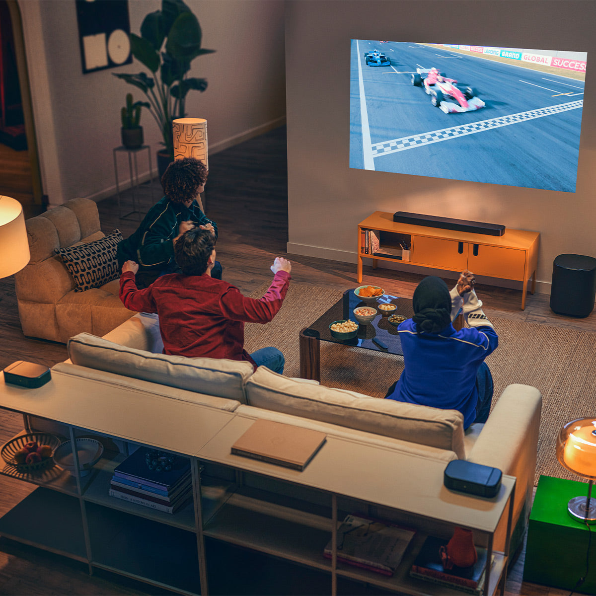 Enjoy your favorite shows or movies without disturbing others. Just put the wireless detachable speakers in front of you and use the JBL ONE app to turn on night listening. The soundbar and the subwoofer are automatically muted, while the speakers deliver an intimate high-quality audio experience just for one. Or two.