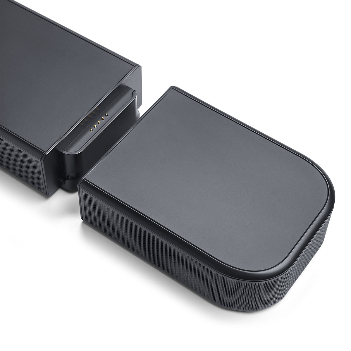It’s never been easier to jump into true surround sound. No extra wires. No power connections. Just lift the detachable surround speakers off the soundbar—you can do it with just one hand—and place them behind you in the room for true surround sound. It’s that simple. Whether you’re binge-watching your new favorite show or hosting a movie night, the speakers’ long-lasting batteries mean you’ll enjoy immersive, cinematic surround sound for hours. When you’re done, simply place them back on the soundbar to charge overnight.
