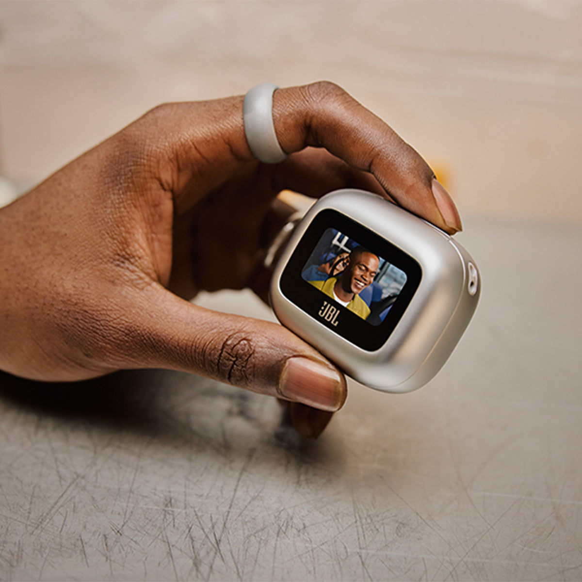 You can customize every aspect of your JBL Live Beam 3 earbuds with the 1.45-inch touchscreen display on your Smart Charging Case™. The display gives you full control of your sound on any devices - laptop, TV, smartphones, or tablets -, without needing to access the JBL App on your smartphone.
