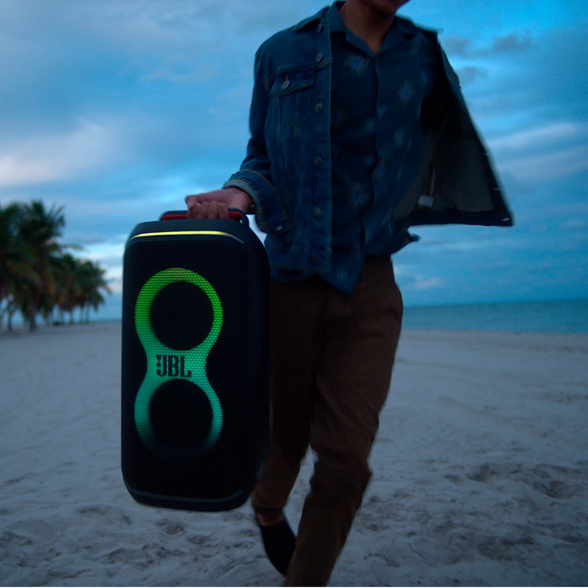 Whether you’re partying with friends in the park or by the seaside, the JBL PartyBox Club 120 is IPX4 splashproof, means a little rain won’t stop the fun.