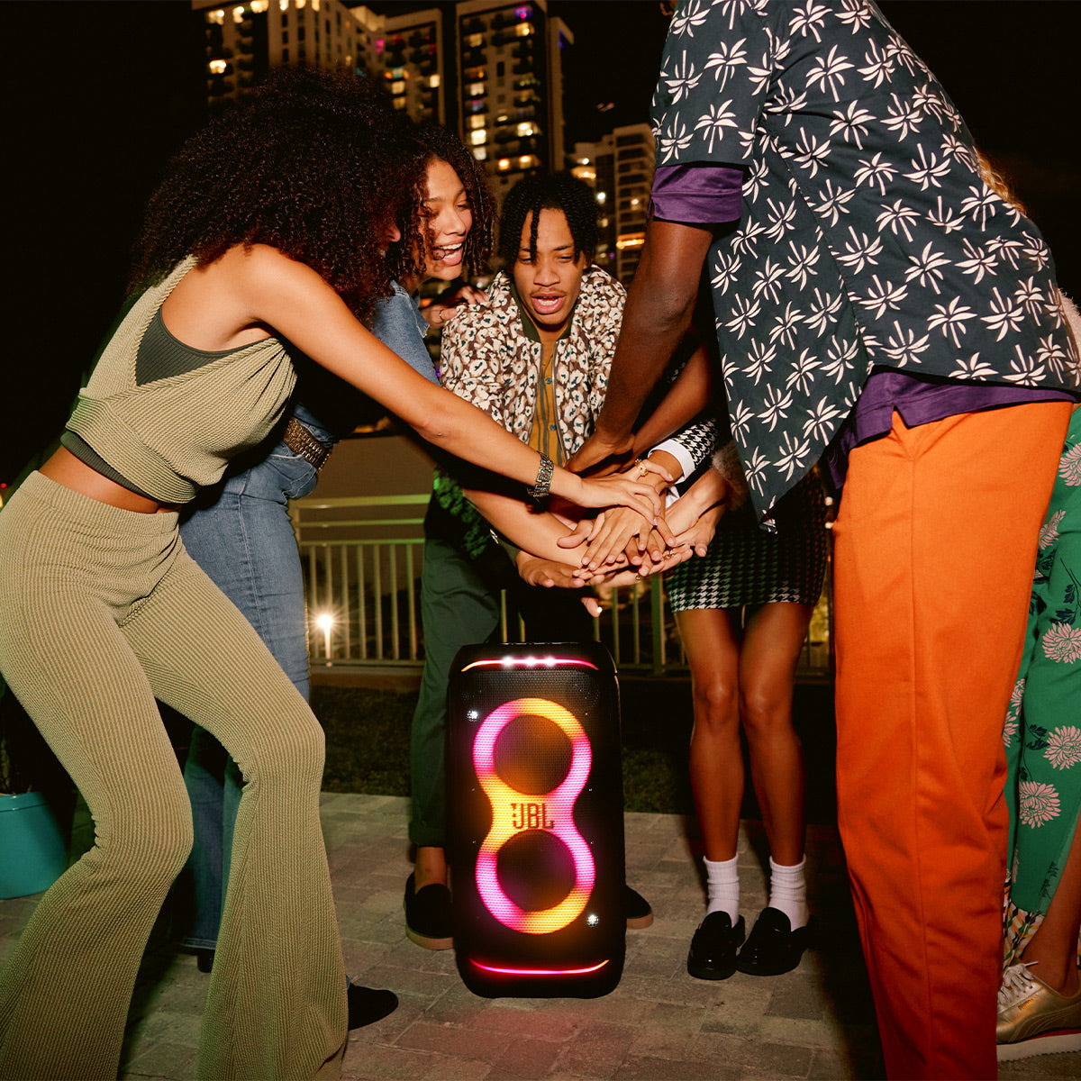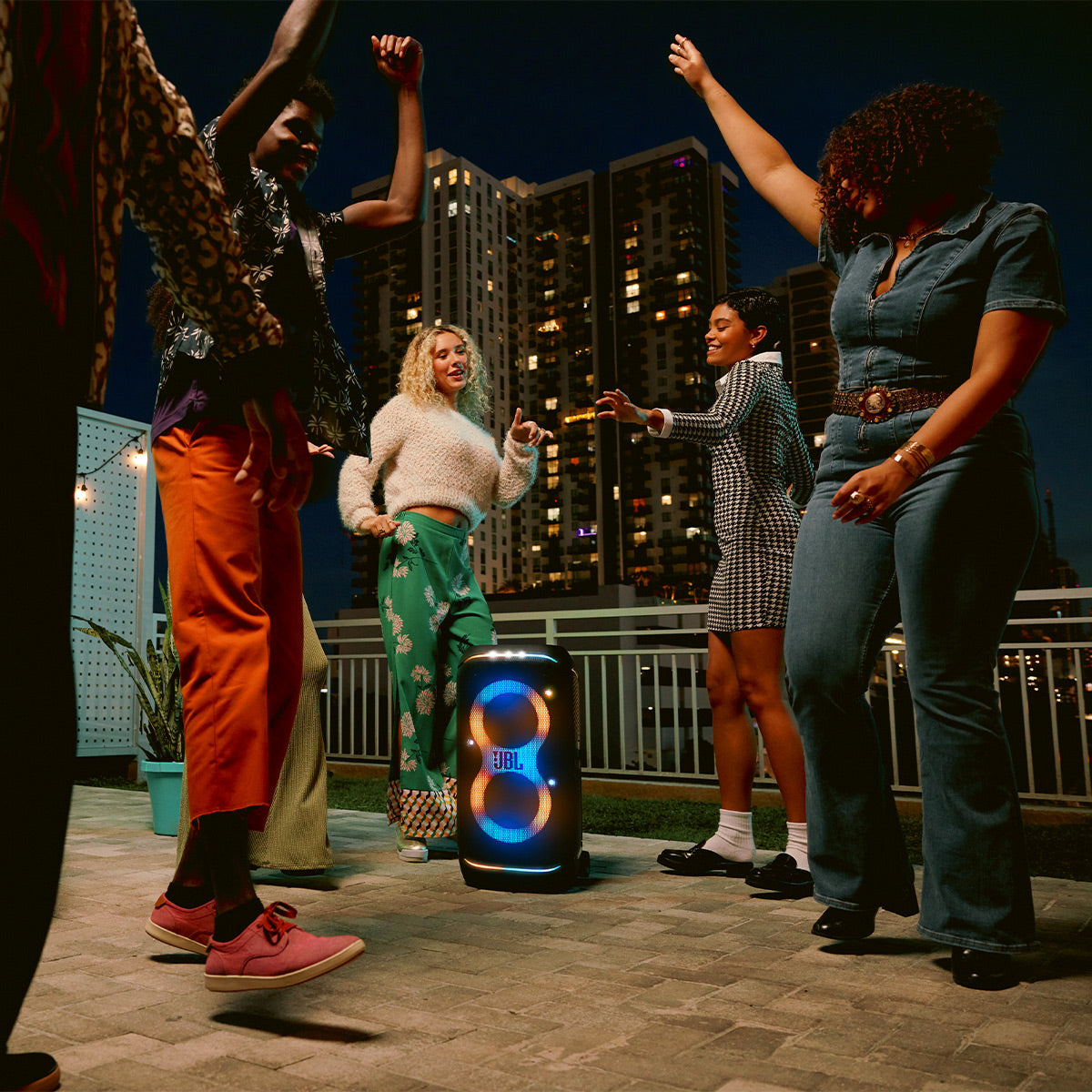 The JBL PartyBox app makes it easier than ever to add interactive party effects, control your music, adjust EQ settings, and customize the colors and patterns of your light show for the perfect party vibe.
