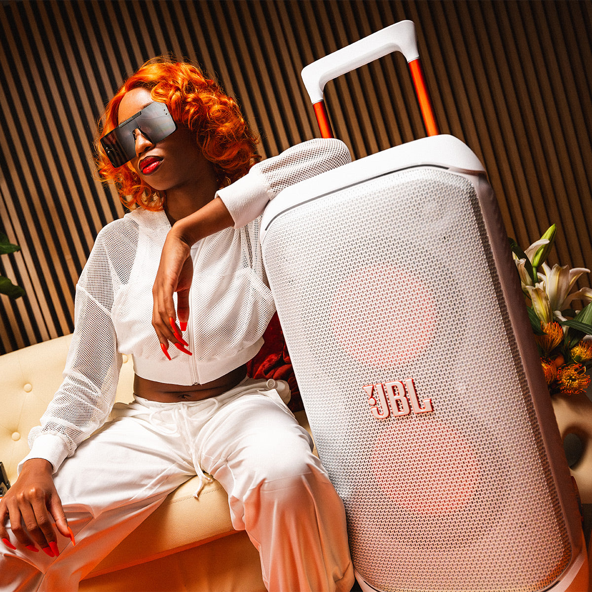 Whether you’re partying with friends in the park or by the seaside, the JBL PartyBox Stage 320 is IPX4 splashproof, means a little rain won’t stop the fun.