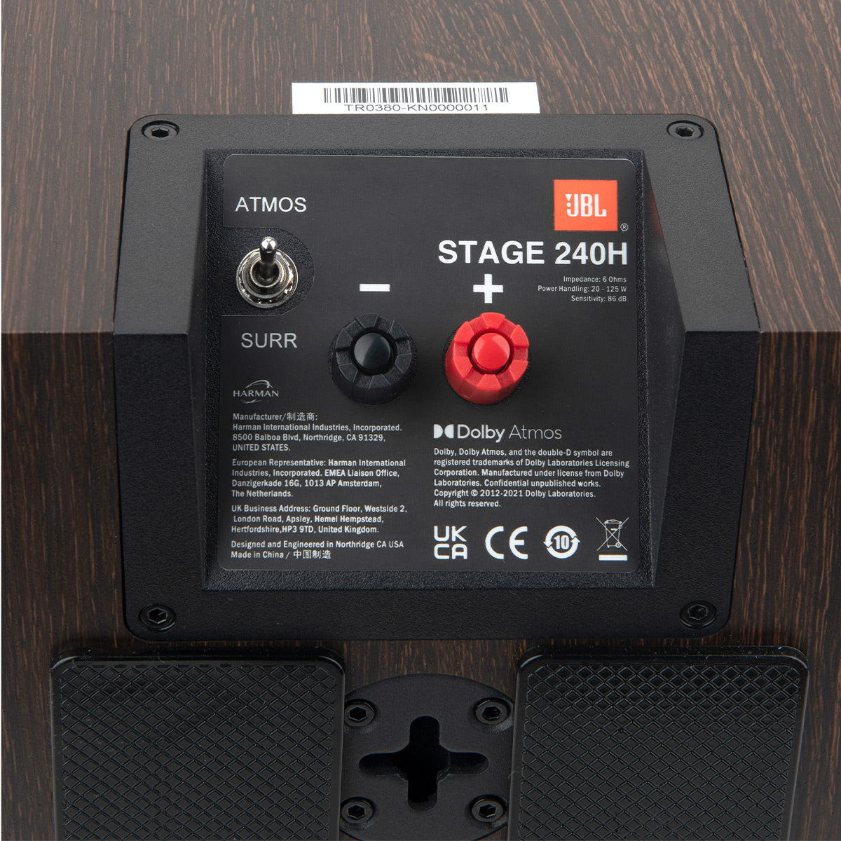The 240H Dolby Atmos enabled height modules are outfitted with the same woofer and horn from the 240B bookshelf model. They are easily connected via binding posts on the top back of both floorstanding models, or surround channels that can be mounted on the wall or ceiling.