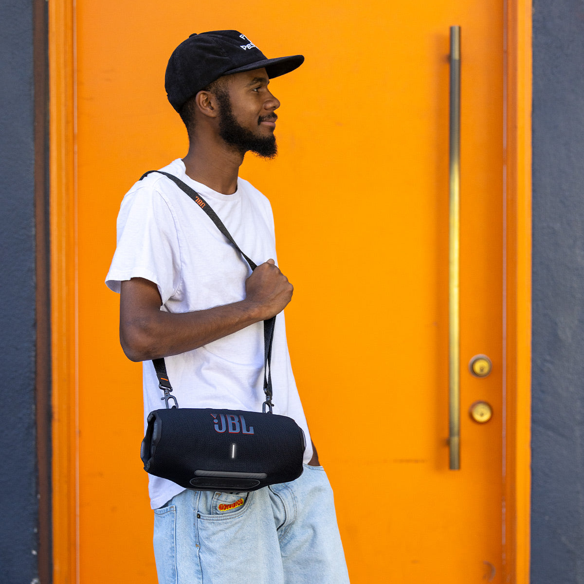 The speaker can be carried on the shoulder or can be adjusted as crossbody, whatever your style or the mood.