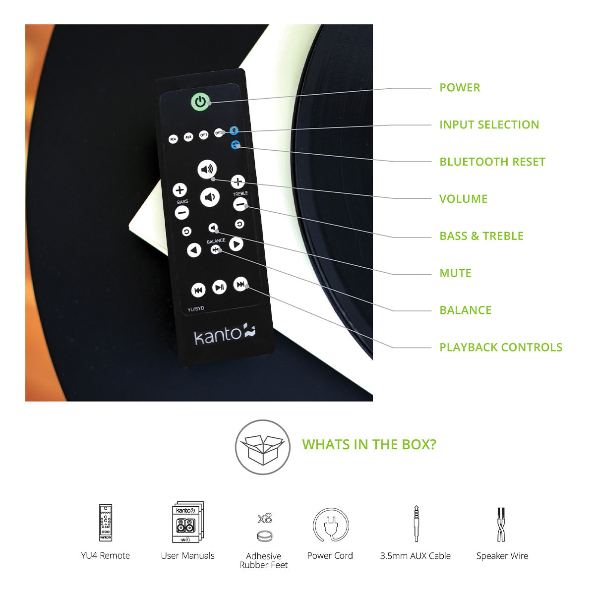 With volume, input, tone and balance controls, as well as playback options when using Bluetooth, the YU4 remote gives you full control over your audio.