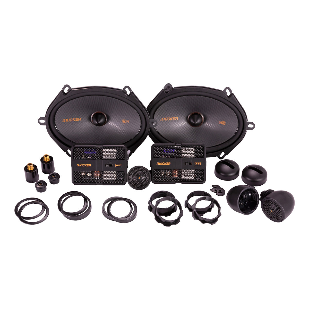 KICKER KS-Series Speakers let you play at concert-like volume, yet maintain the smoothness and subtlety to please even the most selective ear. Internally dampened polypropylene cones and durable rubber surrounds assist the woofers in creating precise midrange and bass, while high-quality silk-dome tweeters deliver natural, detailed highs. Experience your music as a component system with separate tweeters, or as a high-end coaxial system. The woofers’ removable bullet-style phase plug is replaced with a special adapter, allowing the 25 millimeter, silk-dome tweeters to rotate and tilt. You get more system design options and superior off-axis performance.
