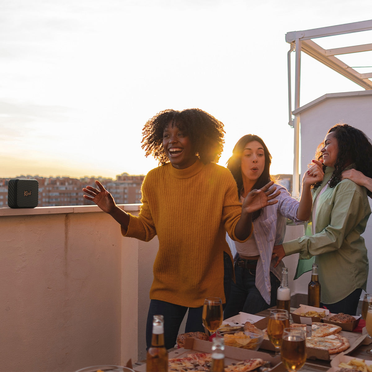 Party people, pay attention – the Klipsch Austin features broadcast mode to allow playback on up to 10+ Klipsch speakers at once. Just put the desired speakers into broadcast pairing mode while audio is playing and enjoy mono signals being sent to the added devices.