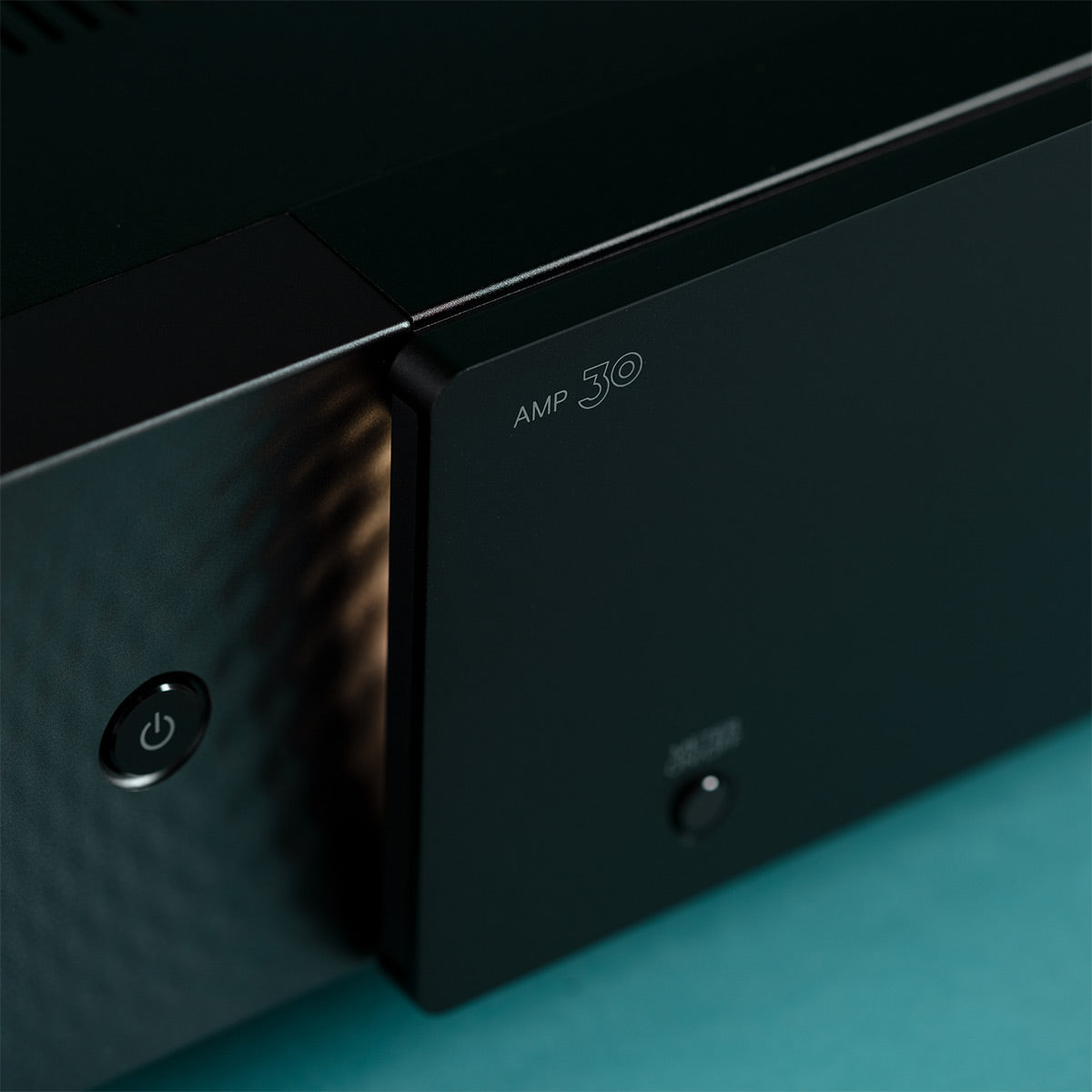 Excellence is heard and seen. AMP 30 is crafted with authentic materials in a modern style befitting its rich heritage and stunning performance. Marantz design is timelessly elegant. AMP 30 is constructed using steel and aluminum casework, while the subtle texture molded into the front panel is lit by the dimmable soft glow of sidelights on either side of the iconic porthole design.