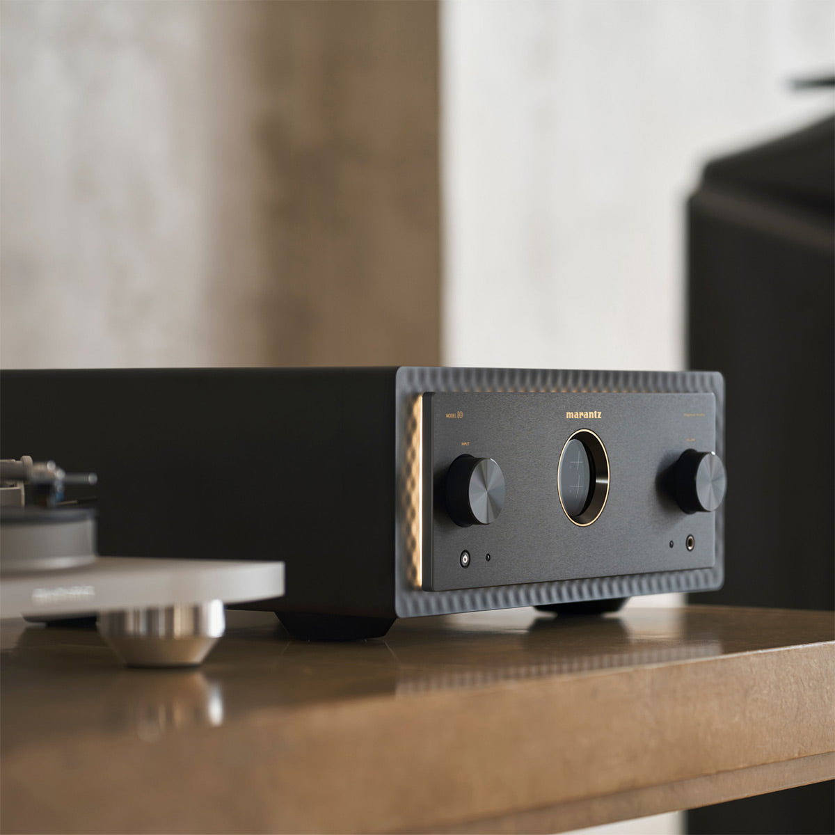 MODEL 10 is the new reference in amplifier design, with a completely new external and internal architecture. It features an innovative amplifier module, and a newly designed dual-mono symmetrical amplifier topology. Engineered to eliminate interference, MODEL 10 boasts complete separation of left to right, front-to-back and top-to-bottom internal structures and the lowest-ever distortion and widest dynamic range of any amplifier in Marantz history. The result is our most powerful and highest performing integrated amplifier ever.