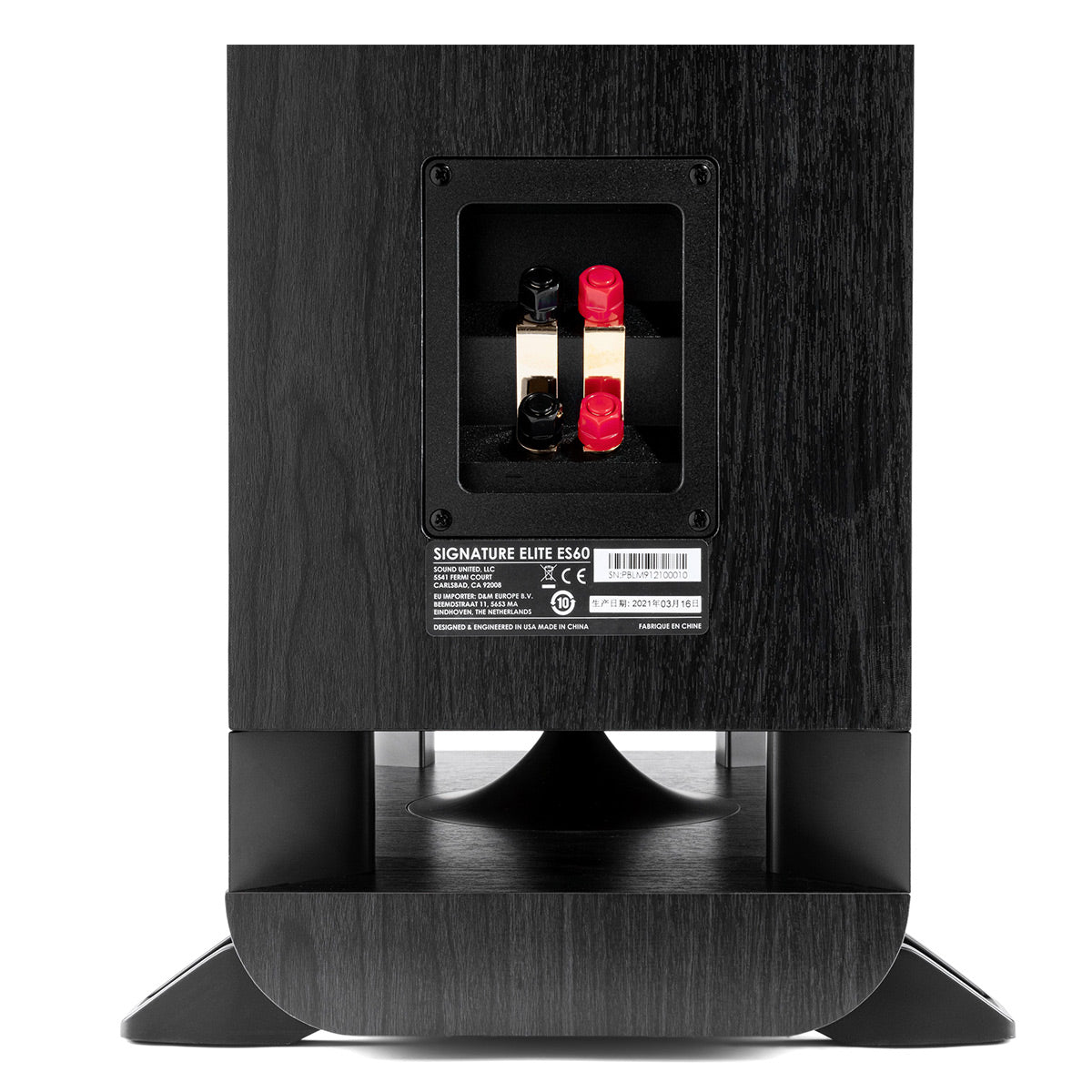 A strong, rigid, and acoustically inert enclosure built with critically damped Medite MDF and laser-optimized bracing reduces internal standing waves and resonances for less coloration and distortion of your sound. The ES60’s anti-diffraction, magnetic grille minimizes sonic interference and can be easily removed to provide a striking look, while dual gold-plated five-way binding posts ensure the most direct, efficient, and lossless connection possible.