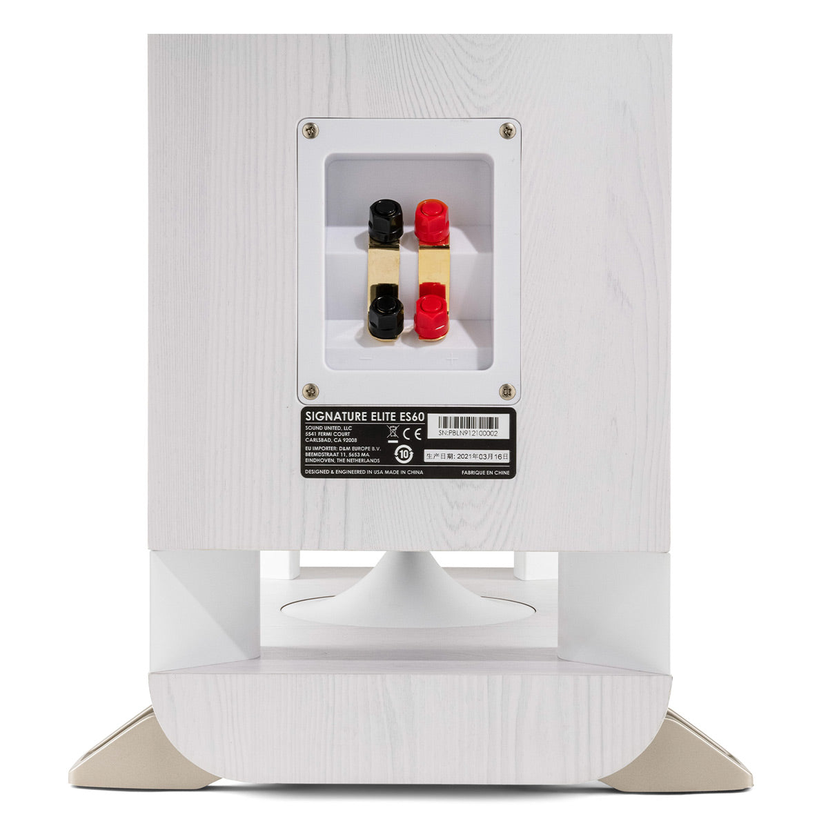 A strong, rigid, and acoustically inert enclosure built with critically damped Medite MDF and laser-optimized bracing reduces internal standing waves and resonances for less coloration and distortion of your sound. The ES60’s anti-diffraction, magnetic grille minimizes sonic interference and can be easily removed to provide a striking look, while dual gold-plated five-way binding posts ensure the most direct, efficient, and lossless connection possible.