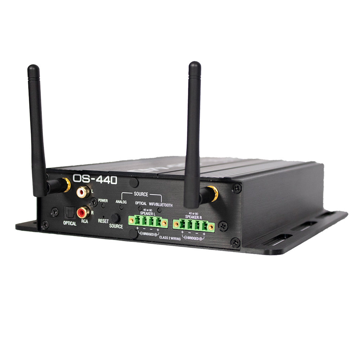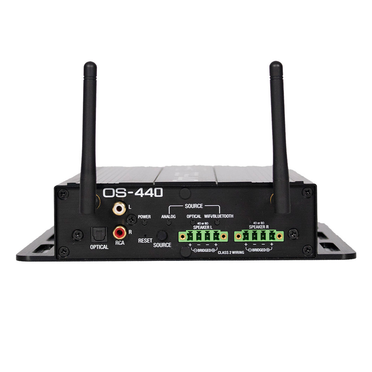 On-board Bluetooth functionality and a closed, stand-alone WiFi direct mode round out the wireless connectivity options of the OS-440. Hard-wiring sources are also an option with analog and digital inputs, allowing the OS-440 to interface with any system or source already in the home.