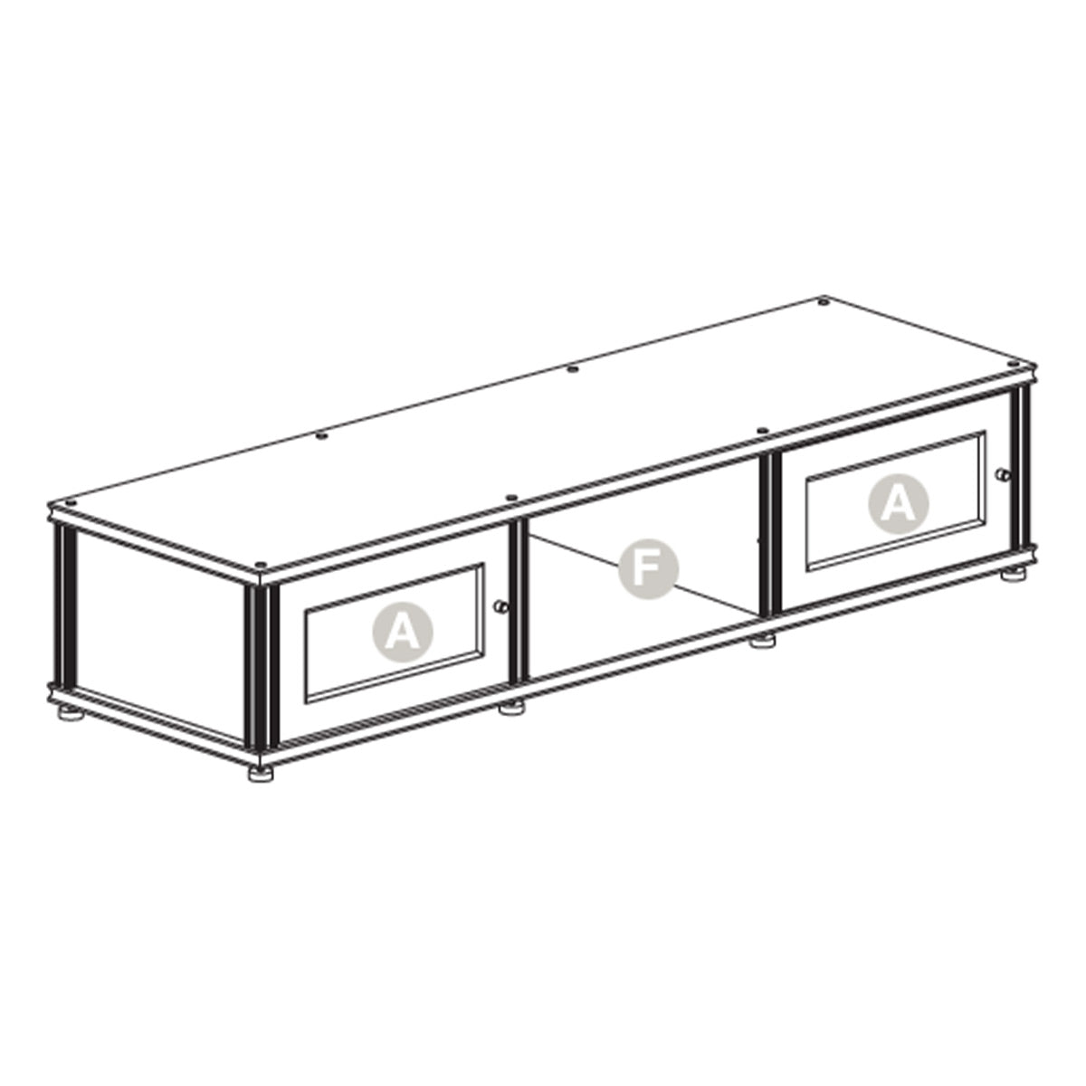 This is a low-boy, triple-wide av cabinet. The center bay is open to accommodate a center speaker. This cabinet may mounted to the wall by simply removing the feet and attaching the wall mounting accessory (sold separately).