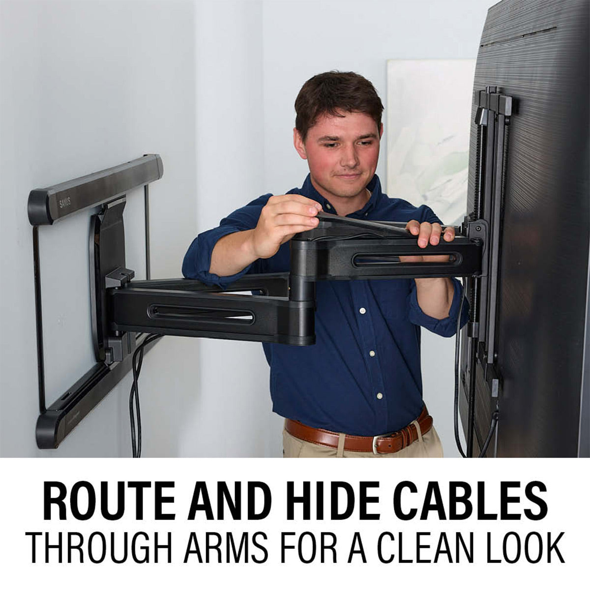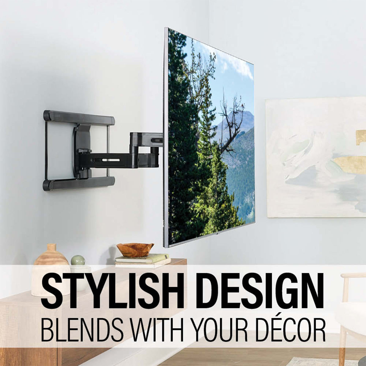 Designed to blend seamlessly with TVs and décor, the Advanced Full-Motion 4D + SHIFT TV Mount was inspired by the sleek look of modern TVs and ultra-high-end kitchen appliances. Beneath the mount’s stylish exterior is an ultra-strong, solid steel frame that provides maximum support ensuring your TV will stay securely in place. With a lower profile depth than traditional full-motion mounts, this mount positions TVs closer to the wall creating a more streamlined look. Route your cables along the arms of the TV mount and ensure a clean and organized look for your home entertainment system.