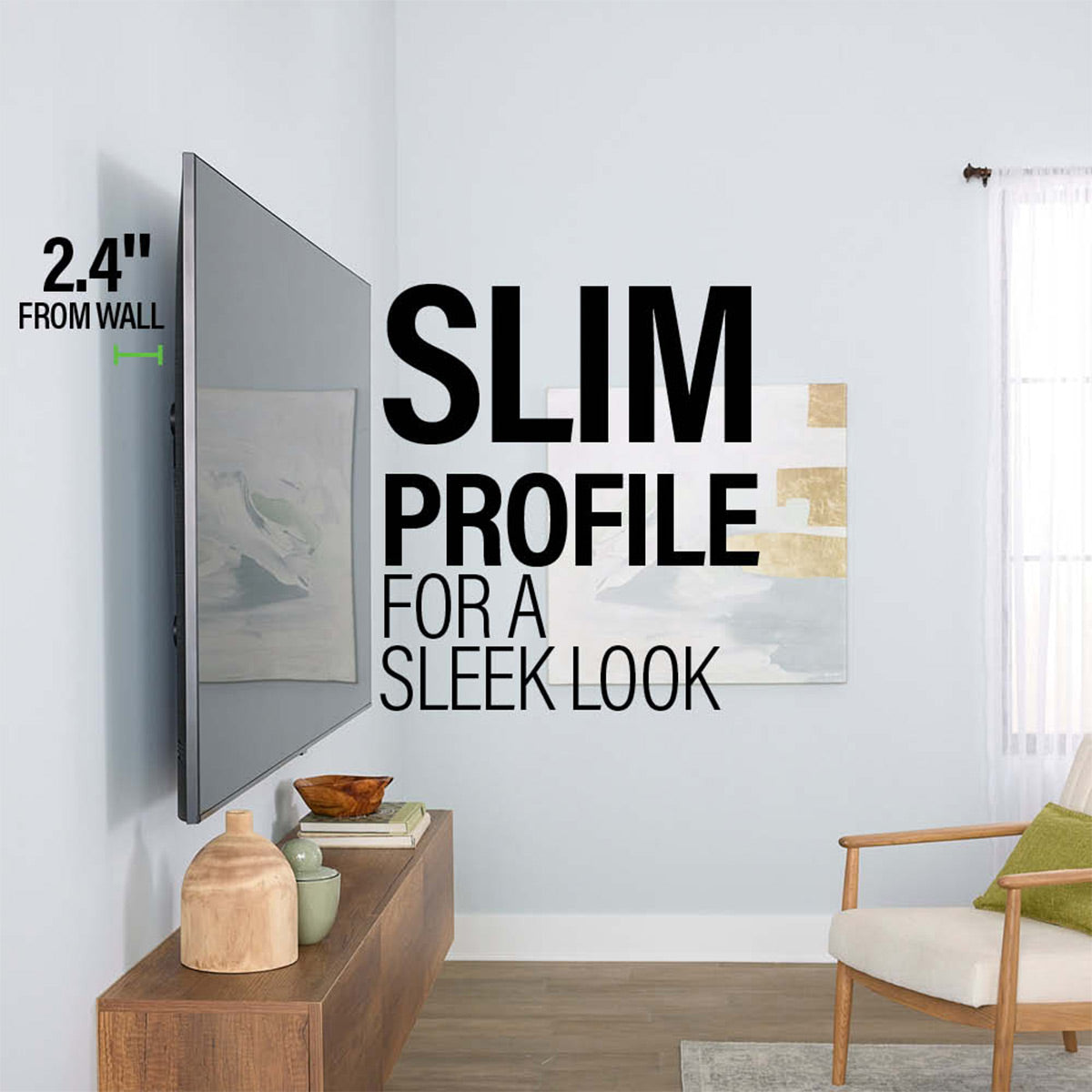 Expertly engineered with FluidMotion™ design, the Advanced Full-Motion Mount provides unparalleled smoothness. Effortlessly extend, tilt and swivel your TV regardless of its weight or thickness. With Virtual Axis™, easily reduce glare and reflections caused by lights or windows by tilting your TV up or down with the touch of a finger. If your TV requires any additional leveling once installed, ProSet™ lets you make micro-adjustments to level after mounting to ensure perfect positioning.