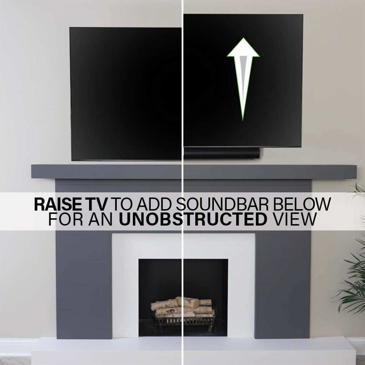 The SHIFT feature also allows you to raise your TV at a later time to provide enough space to add in a soundbar or, accommodate seasonal decorations that may interfere with the screen of the TV. If your TV doesn’t happen to end up in the position you hoped it would be, or you accidentally mismeasure during installation, our SHIFT height adjustment feature allows for easy TV height readjustment, either up or down, ensuring that your TV is perfectly positioned where you want it.