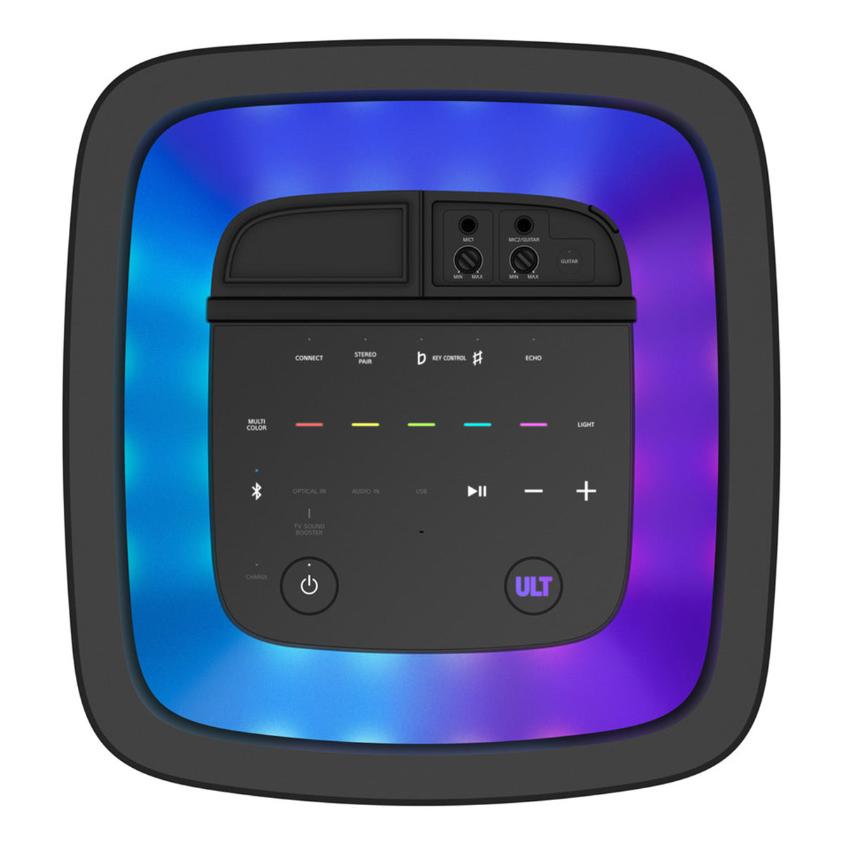 Perfect your karaoke with the Echo and Key Control function on the top panel. There's also a second input, so you can plug in another microphone for a duet or even a guitar and use your speaker as an amp. The optional ULT MIC includes a pair of durable, high-quality wireless karaoke mics, along with a mic jack receiver (6.3mm) for easy, always-ready connection to your ULT TOWER (sold separately).
