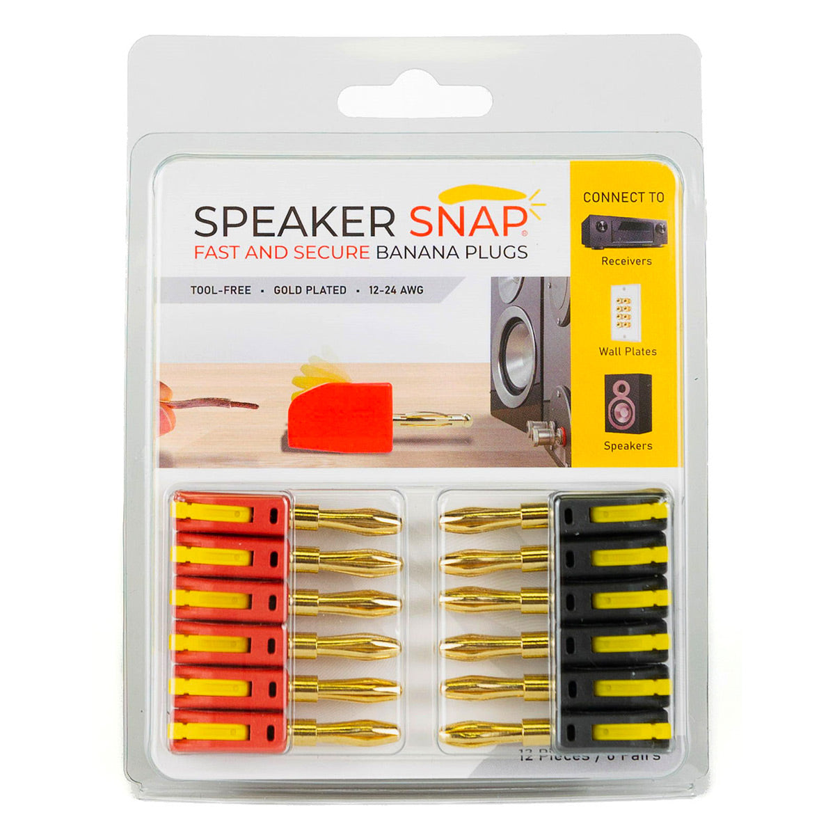 Speaker Snap 12 Count of Fast & Secure Banana Plugs, Gold Plated, 12-24 AWG, for Home Theaters, Speaker Wire, Wall Plates, and Receivers